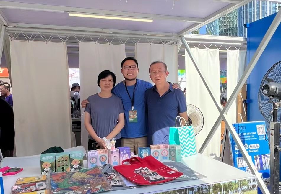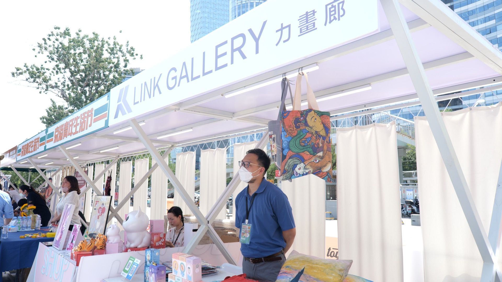 正值京港青年生活节开幕,近60个内地和香港品牌在此摆摊,为京港艺术交流打call,囊括特色小吃、潮流文创……一位颇具艺术气质的摊主戴着细边眼镜,留着抹络腮胡,跟前的摊位上摆放着文创娃娃、包包,造型别致。