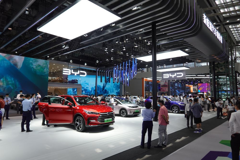 6月5日在深圳举办的粤港澳大湾区国际汽车博览会现场,新能源汽车人气旺。新华社记者印朋 摄
