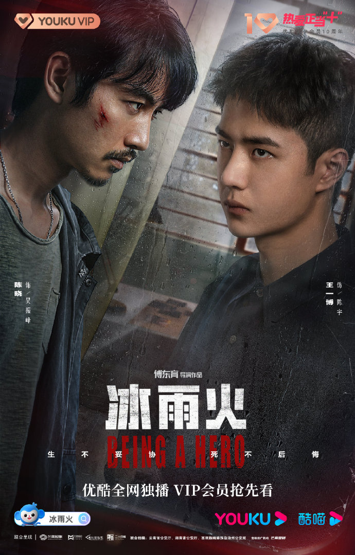 《冰雨火》这部电视剧的英文名字是“Being A Hero”,直译过来即“做一个英雄”。