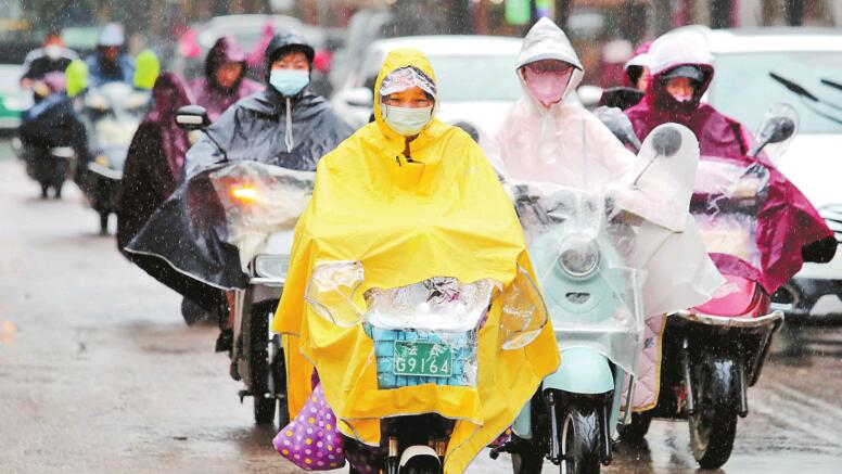 9月1日,清晨上班的昆明市民在雨中骑行。记者 杨峥 摄