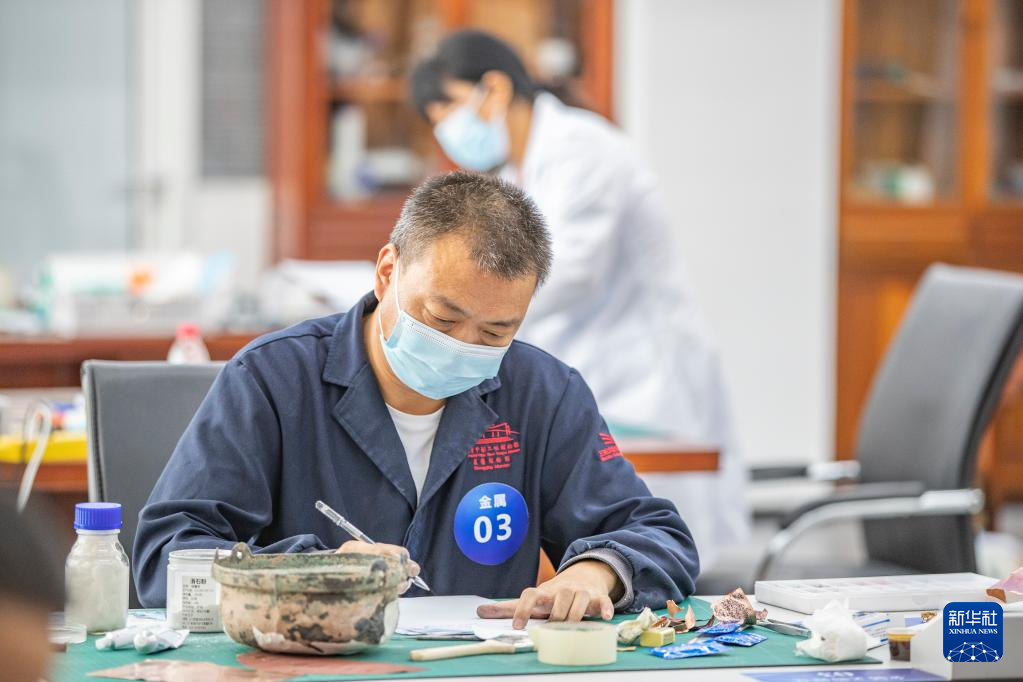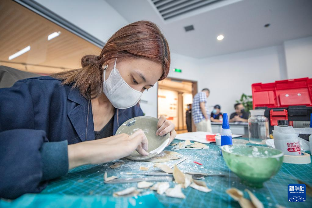 9月9日,参赛人员在进行陶瓷文物修复技能比赛。新华社记者 黄伟 摄