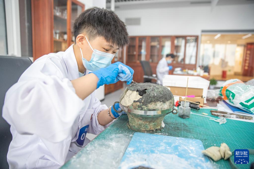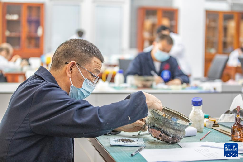 9月9日,参赛人员在进行金属文物修复技能比赛。新华社记者 黄伟 摄