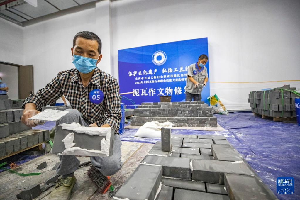 9月9日,参赛人员在进行泥瓦作文物修复技能比赛。新华社记者 黄伟 摄