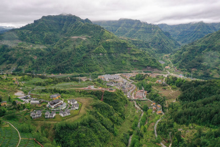 这是重庆石柱土家族自治县中益乡华溪村景观(2022年4月14日摄,无人机照片)。新华社记者 唐奕 摄