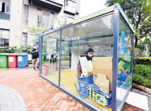金辰街道在鑫世界小区设置的“固废兑换银行”。