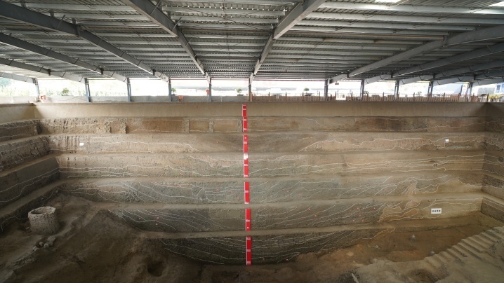 图为州桥遗址东侧探方大运河(汴河)河道西壁剖面图