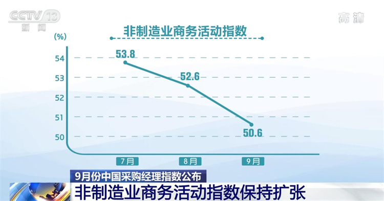 从非制造业情况看,今天(9月30日)公布的9月份非制造业商务活动指数仍然位于扩张区间。