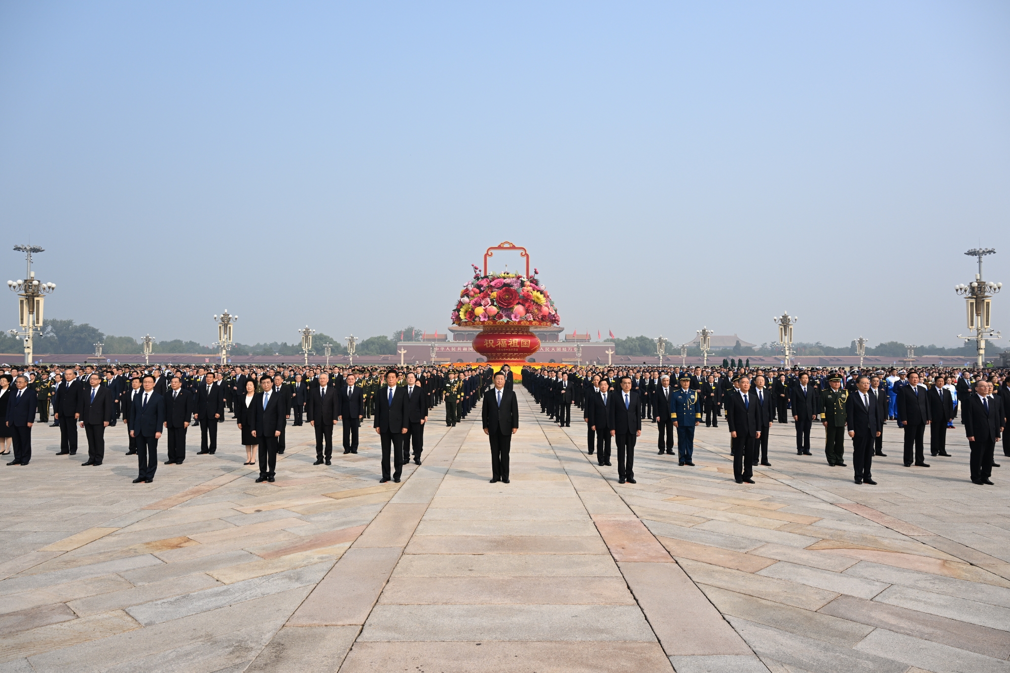 9月30日上午,党和国家领导人习近平、李克强、栗战书、汪洋、王沪宁、赵乐际、韩正、王岐山等来到北京天安门广场,出席烈士纪念日向人民英雄敬献花篮仪式。