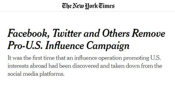 《纽约时报》对“影响力行动”的相关报道。图片来源:《纽约时报》网站截图