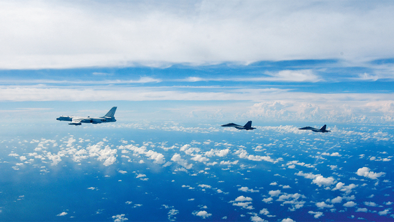 2022年8月7日,中国人民解放军东部战区按计划在台湾岛周边海空域进行实战化联合演训。图为战机编队飞行。 新华社发 李秉谕/摄