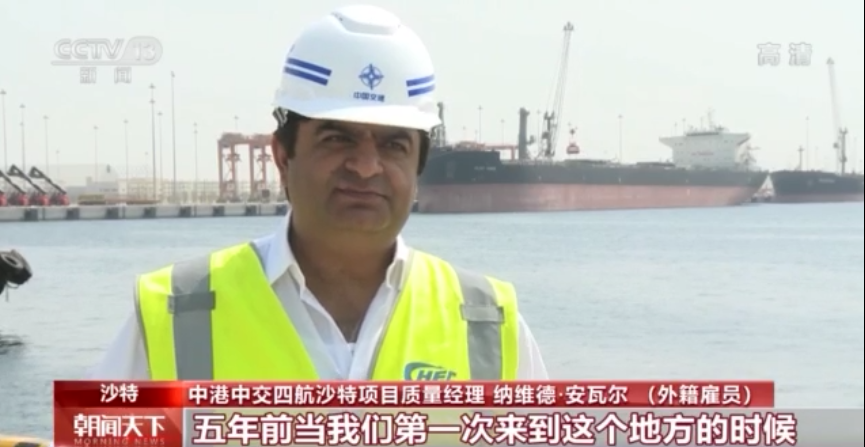 中港中交四航沙特项目质量经理 纳维德·安瓦尔:五年前当我们第一次来到这个地方的时候,能看到的只有沙子,当我们正式开始执行这个项目的时候,这里还什么都没有。