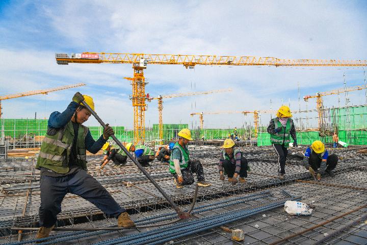 建设者在雄安创新研究院科技园区项目建设现场施工。(任双欢摄)