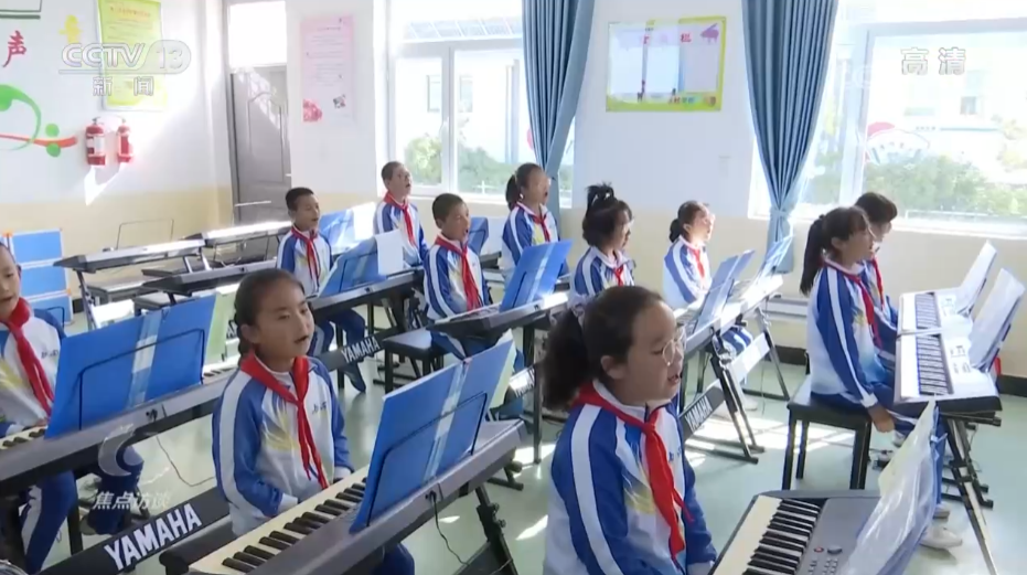 甘肃武威市古浪县富民完全小学学生高嘉欣说:“老师刚开始教我们,我们用了一两节课就会弹了,又开心、又快乐。”