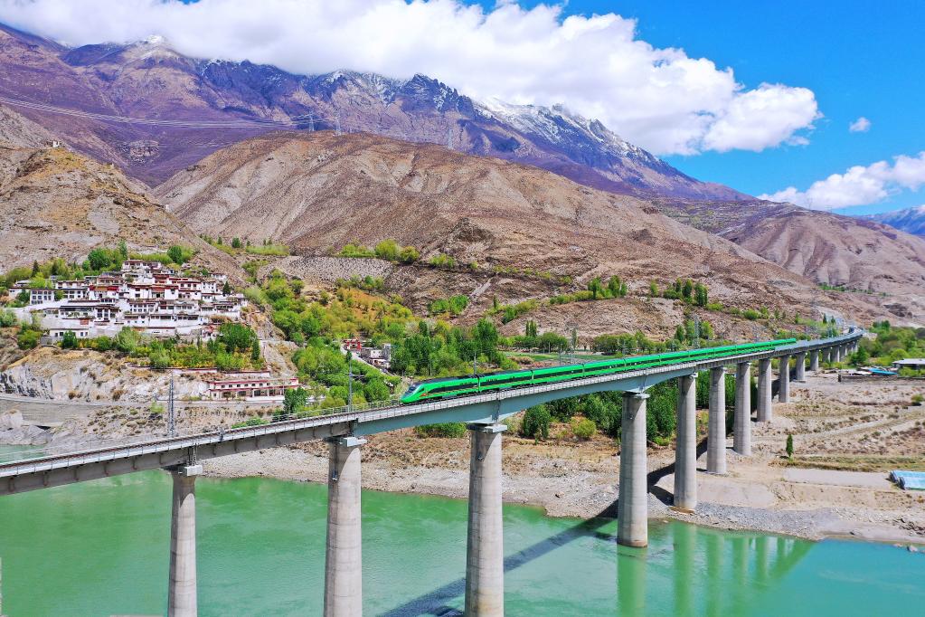 复兴号列车行驶在西藏朗县境内(2022年4月14日摄)。 新华社记者 觉果 摄