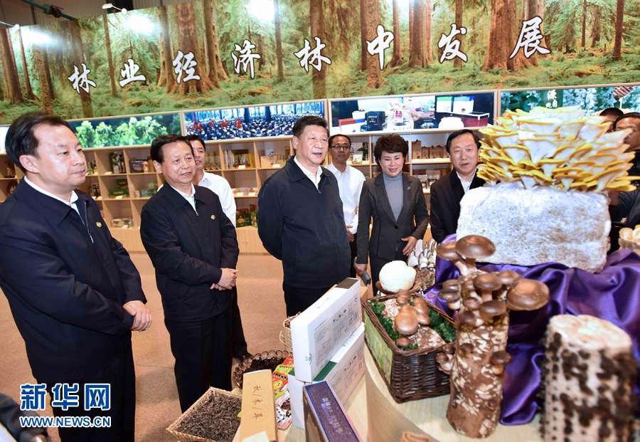 2016年5月23日至25日,中共中央总书记、国家主席、中央军委主席习近平在黑龙江考察调研。这是5月23日上午,习近平在伊春市生态经济开发区规划展示厅观看生态产品展示,了解林区全面停伐后产业接续发展情况。 新华社记者 李涛 摄