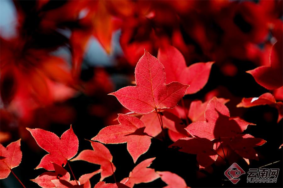 黑龙潭公园秋日枫叶红得娇艳夺目。