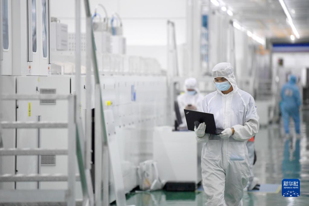 科研人员在秦创原光伏创新中心——隆基中央研究院中试线上工作(2022年9月23日摄)。新华社记者 李一博 摄