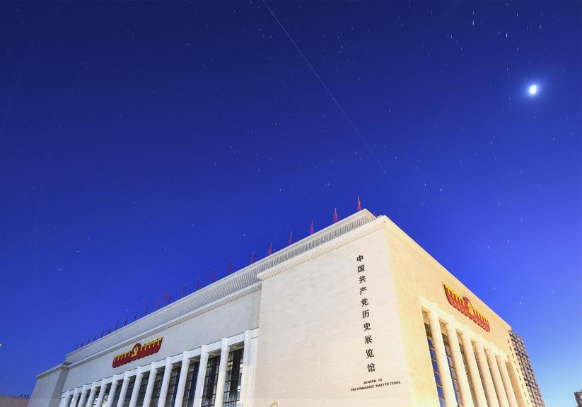 9月21日,中国空间站组合体飞越中国共产党历史展览馆。新华社客户端网友139****1898摄