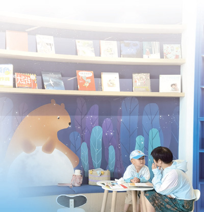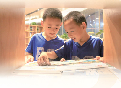 小读者在山东威海荣成市市民文化公园“城市书房”阅读绘本。李保卫摄