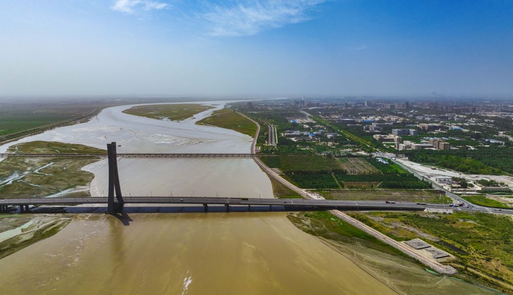 ↑塔里木河流经新疆阿拉尔市(2022年8月2日摄,无人机照片)。新华社发(肖玉磊 摄)