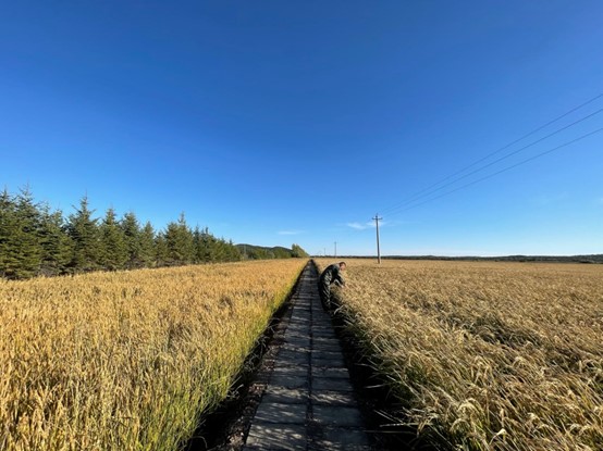 邢玉文的稻田里,左侧种植“胚芽米”,右侧种植稻花香12号(总台央广记者韩雪莹 摄)