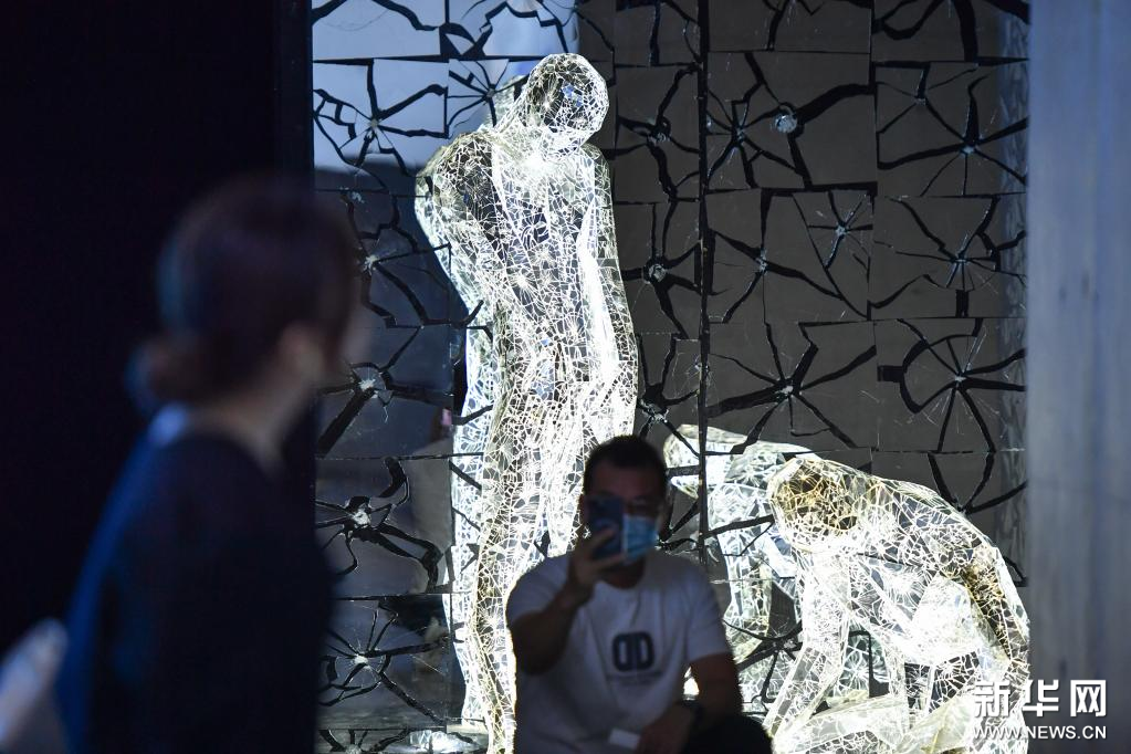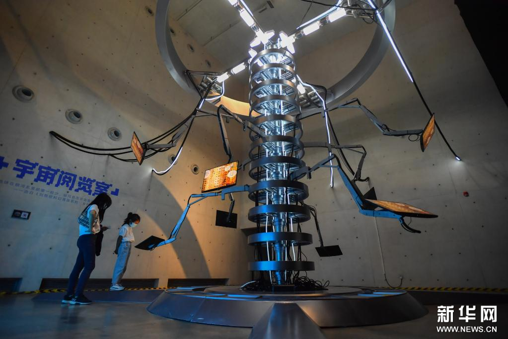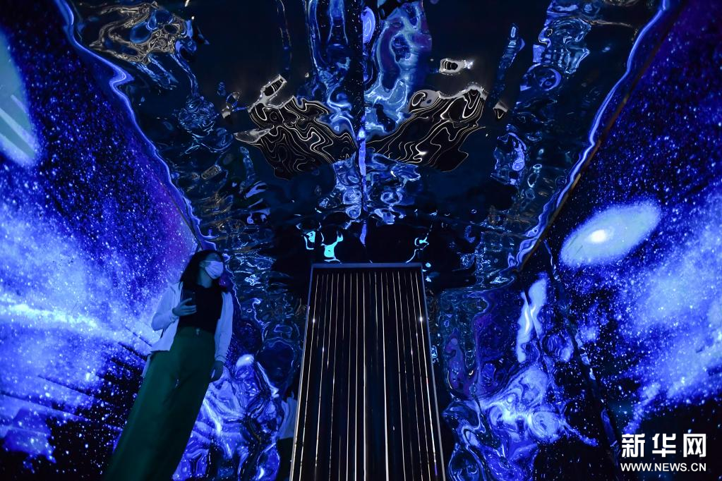 9月24日,参观者在“刘慈欣科幻漫画宇宙主题展”的星空镜屋展区观看展品。新华社记者 陈泽国 摄