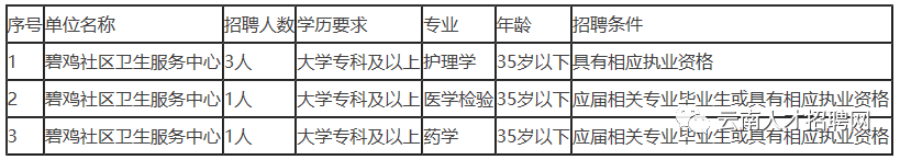 昆明市西山区碧鸡社区卫生服务中心面向社会招聘5名在职非在编卫生专业技术人员,具体招聘岗位信息见下图。