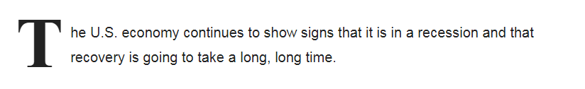 美国《新闻周刊》网站12日刊登评论文章称,美国经济仍显示出衰退的迹象,要实现复苏需要“很长、很长时间”,各个领域都存在问题。