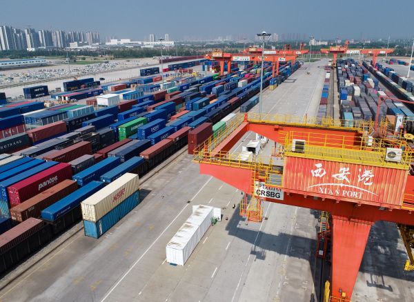 这是7月29日拍摄的西安国际港站。自2013年开行以来,从陕西西安始发的中欧班列长安号不断提速、扩线,逐步成为内陆地区效率高、成本低、服务优的国际贸易通道。(张博文 摄)