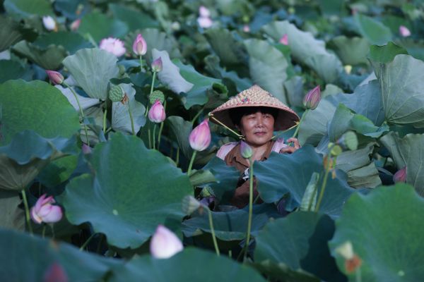 6月29日,浙江省建德市大慈岩镇里叶村的莲农们在荷田里采摘荷花和莲蓬。近年来,当地通过推广“建德里叶白莲”品牌、加大文旅融合发展,形成较为完善的莲产业链,年产值近亿元,走出共同富裕的“荷美之路”。(新华社)