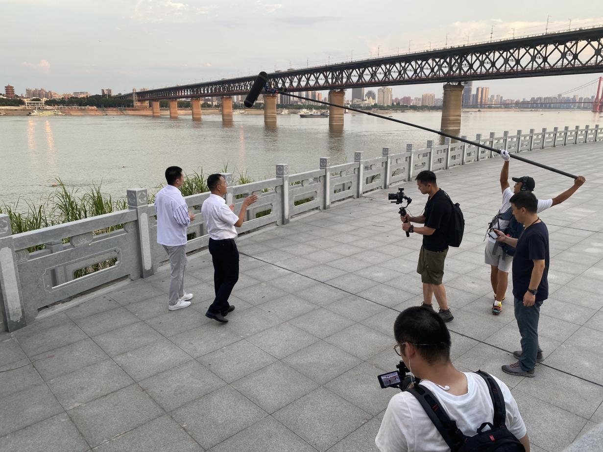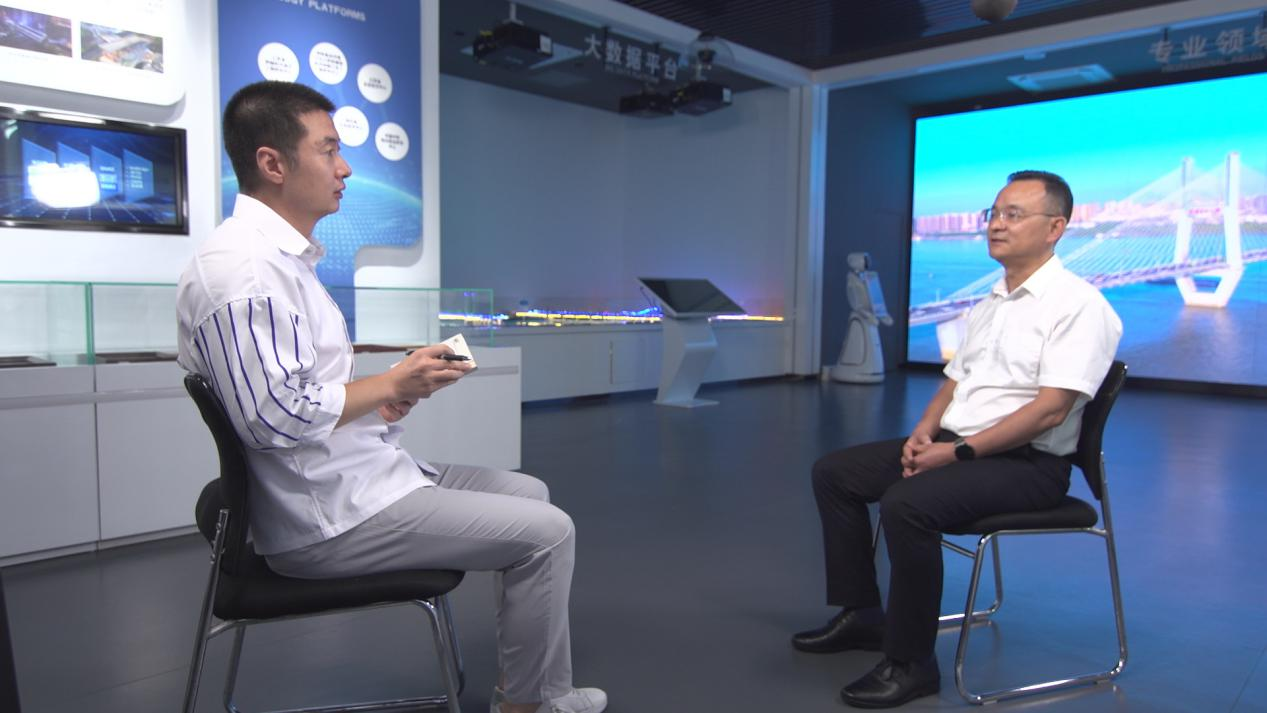 中铁大桥勘测设计院总工程师肖海珠(右)接受《追梦路上》专访 (张大战 摄)