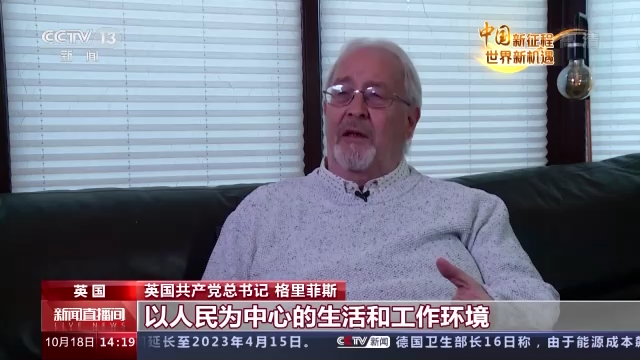 英国共产党总书记 格里菲斯:我想最值得世界关注的中国成就就是消除绝对贫困,中国在这方面取得了显著成就。我自己亲眼见证了很多中国的发展成就,如治理污染和改善环境等。没有到过中国的人很难想象中国的蓬勃发展,这些发展真正创造了以人民为中心的生活和工作环境。