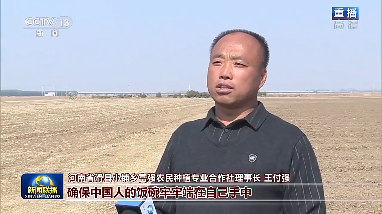 河南省滑县小铺乡富强农民种植专业合作社理事长 王付强:党的二十大报告提到,确保中国人的饭碗牢牢端在自己手中。作为种粮大户,我感到了沉甸甸的责任,更加坚定我规模化种植粮食作物的信心。我将积极响应号召,脚踏实地多种粮、种好粮,多为国家粮食安全作贡献。