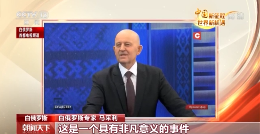 白俄罗斯首都电视频道在直播节目中关注报道中共二十大,白俄罗斯专家马采利表示,中共二十大的召开具有非凡意义。