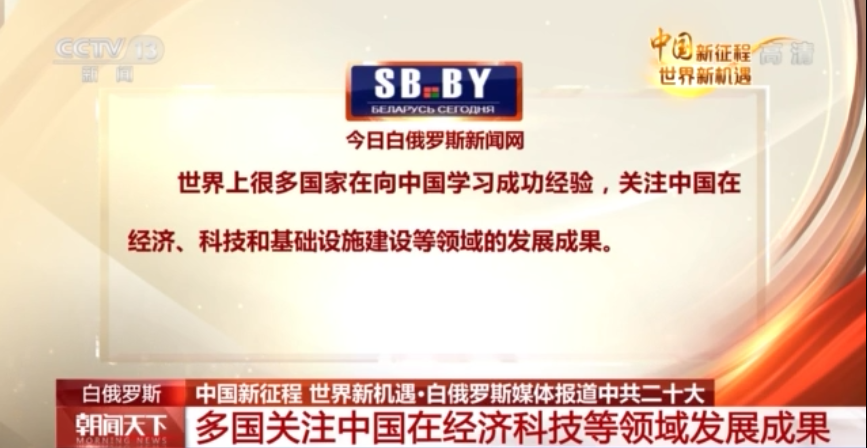 今日白俄罗斯新闻网发表文章表示,世界上很多国家在向中国学习成功经验,关注中国在经济、科技和基础设施建设等领域的发展成果。