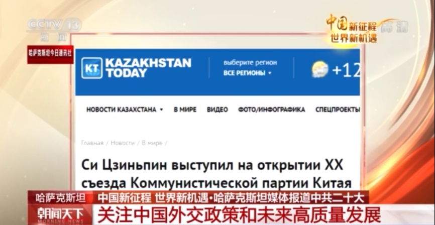 哈萨克斯坦今日通讯社对中共二十大的召开进行了全程跟踪报道,对习近平总书记的报告进行了要点解读。报道中写道,在中国共产党的领导下,中国在近十年取得了伟大成就,未来将加快构建新发展格局、推动高质量发展、实现全面建设社会主义现代化国家。