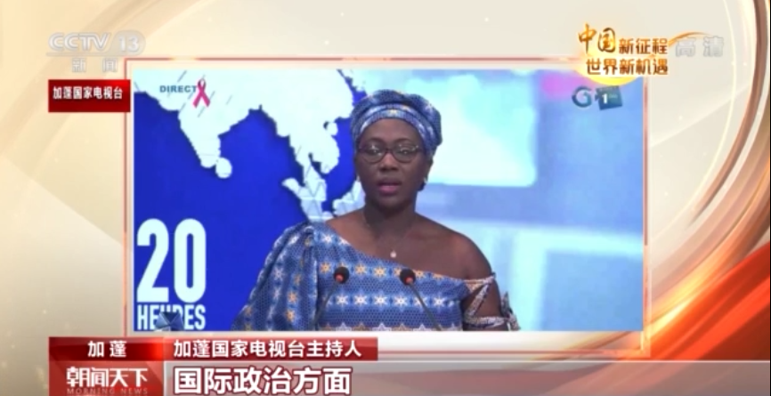 加蓬国家电视台主持人:国际政治方面,我们来关注中国共产党第二十次全国代表大会,请看报道。