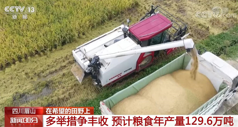 眼下,四川眉山的149万亩水稻也迎来丰收。今年,当地通过采取引水浇灌等措施力争秋粮丰收,预计全年粮食产量129.6万吨,比上年增长1.6%。