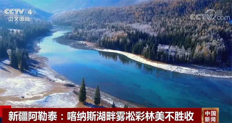 这两天,随着气温下降,新疆阿勒泰喀纳斯湖畔出现了雾凇景观。从空中俯瞰,喀纳斯湖好似碧玉镶嵌在阿尔泰群山之中,苍绿的云杉与金黄的白桦交相辉映。这里一半是缤纷彩林,一半是雾凇景色,美不胜收。