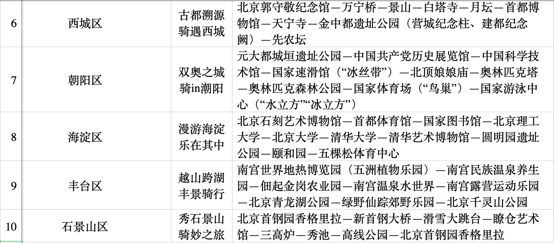 10月27日,北京市文化和旅游局联合各区政府、经开区管委会向市民和游客推出21条“漫步北京”文旅骑行主题线路。