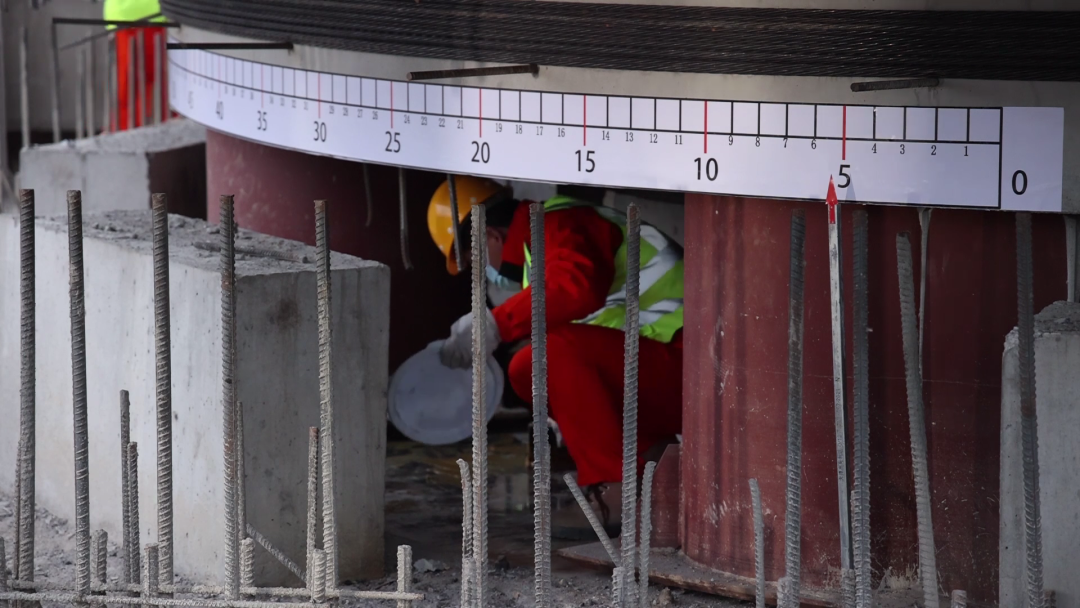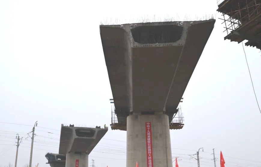 察右前旗特大桥是集大原高铁控制性工程之一,全长20.84公里,总孔数760孔。此次施工转体梁桥面宽12.4米,总重2813吨,转体角度为79.11度。在两套自动连续张拉千斤顶同步牵引作用下,整个箱梁经过60分钟平稳转动,成功转体。