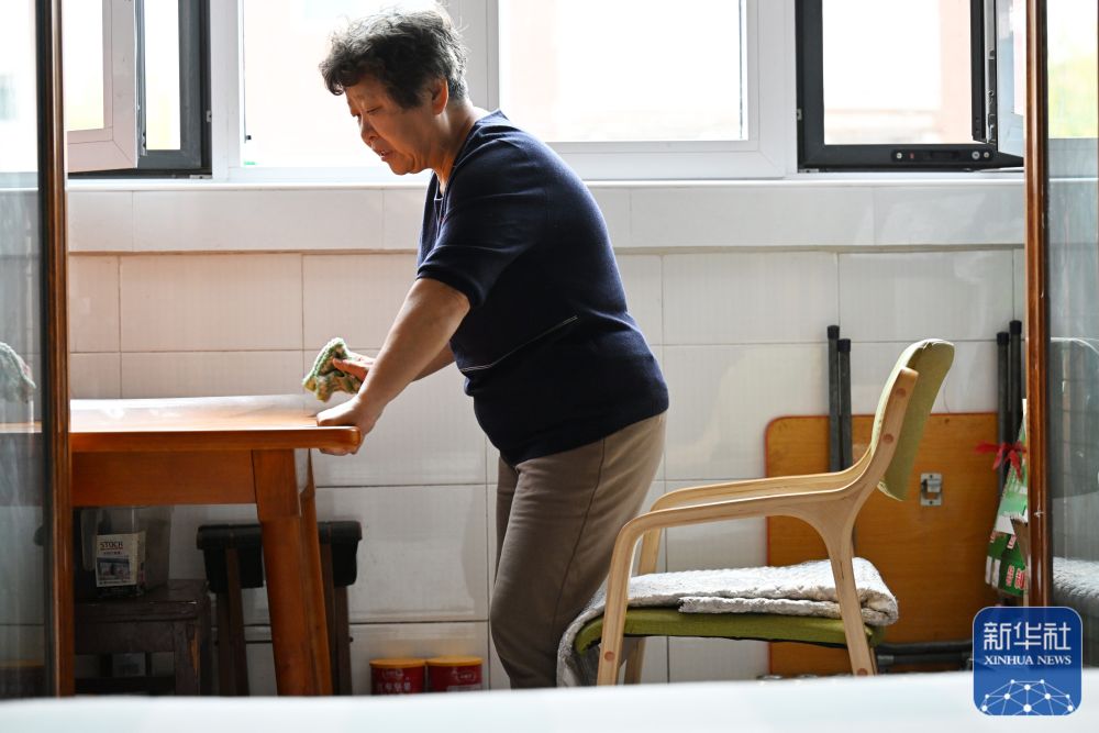 在天津市和平区文化村社区一居民家中,新添置的适老化桌椅配有握手孔位,方便老人起身时借力(10月27日摄)。