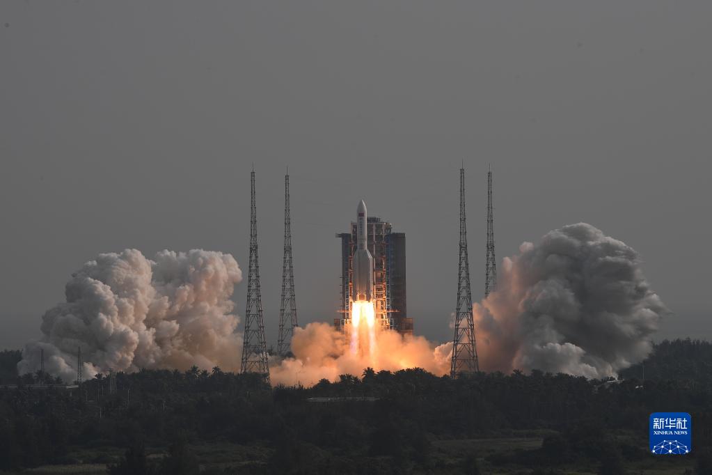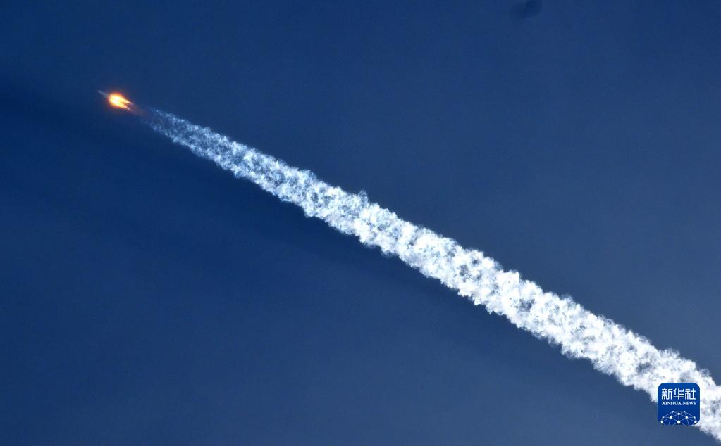 10月31日15时37分,搭载空间站梦天实验舱的长征五号B遥四运载火箭,在我国文昌航天发射场准时点火发射,约8分钟后,梦天实验舱与火箭成功分离并准确进入预定轨道,发射任务取得圆满成功。新华社记者 郭程 摄