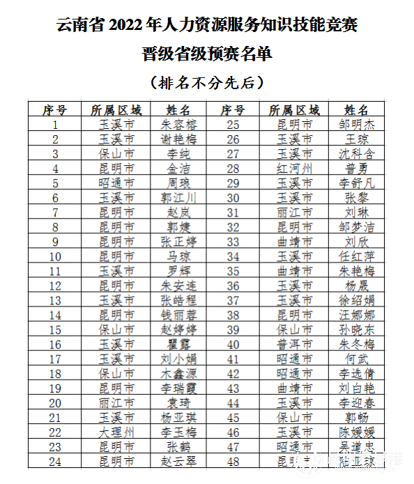 48名选手晋级云南省2022年人力资源服务知识技能竞赛省级预赛