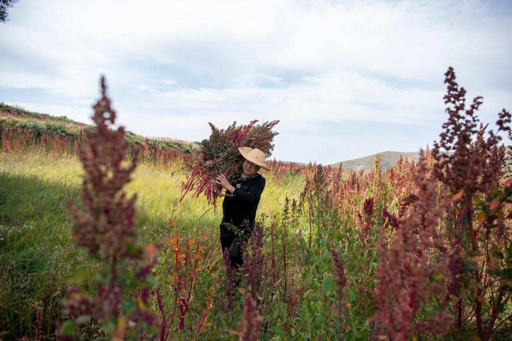 忻州市静乐县的农田里,村民在搬运藜麦。(新华社记者杨晨光/摄)