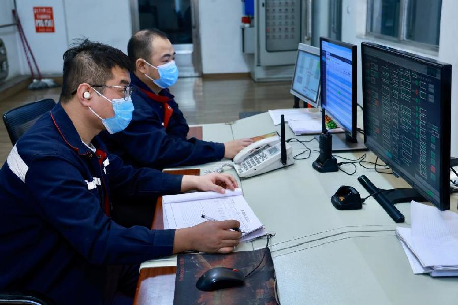 工作人员巡查供暖设备运行情况(受访单位供图)