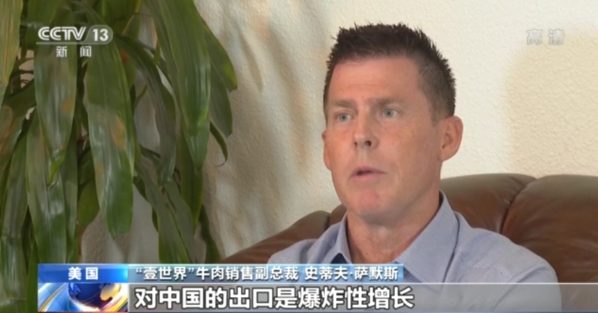 “壹世界”牛肉销售副总裁 史蒂夫·萨默斯:对中国的出口是爆炸性增长,这绝对是改变了市场,而且有一些在美国本土销售的牛肉现在正被出口到中国。