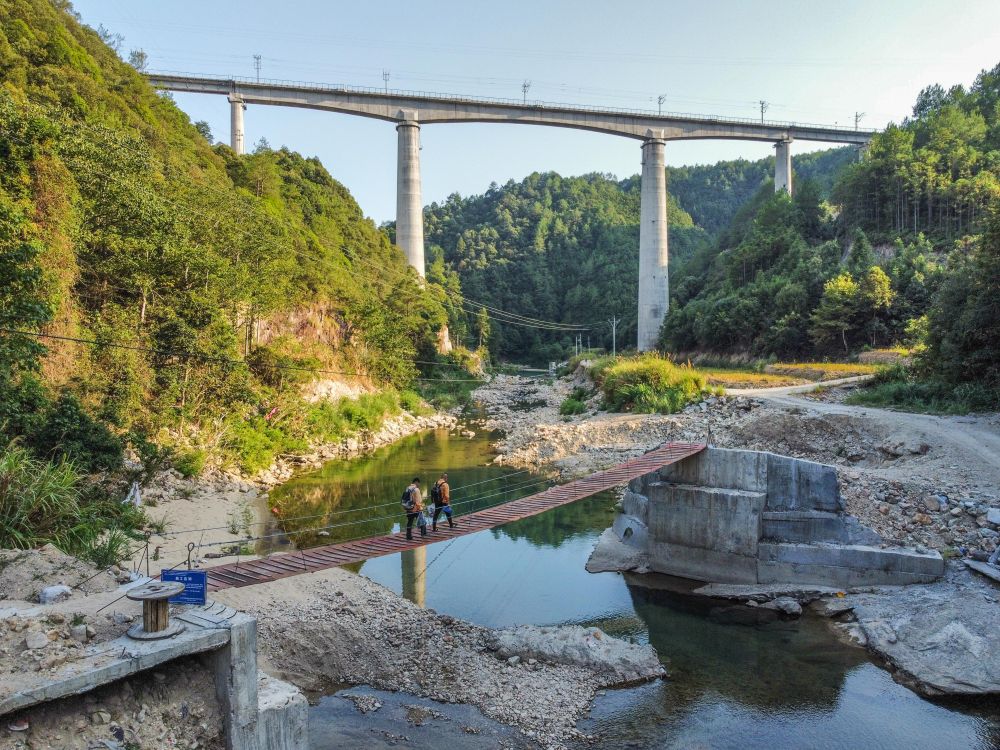 2020年9月27日,衢宁铁路通车首日,动车组列车通过衢宁铁路龙泉溪特大桥。
