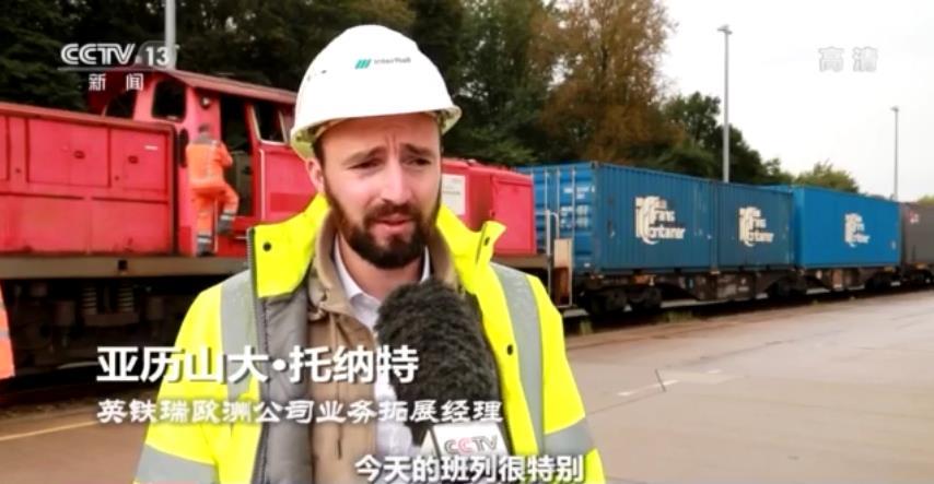 英铁瑞欧洲公司业务拓展经理 亚历山大·托纳特:我们有很多趟班列开往上海,今天的班列很特别,是为了在上海举办的进博会,有十四个集装箱专门装了展品。我们观察到,近年来,新丝绸之路上的中欧班列货运量持续大幅增长,希望这样良好的发展势头能够继续保持下去。