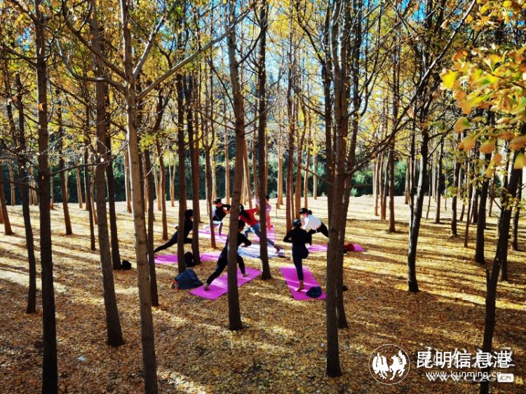 春融公园位于昆明市级行政中心办公区北部,马路边、公园内均有成片的银杏林,目前大半已黄,脚踏满地落叶,可以在林间漫步留影。